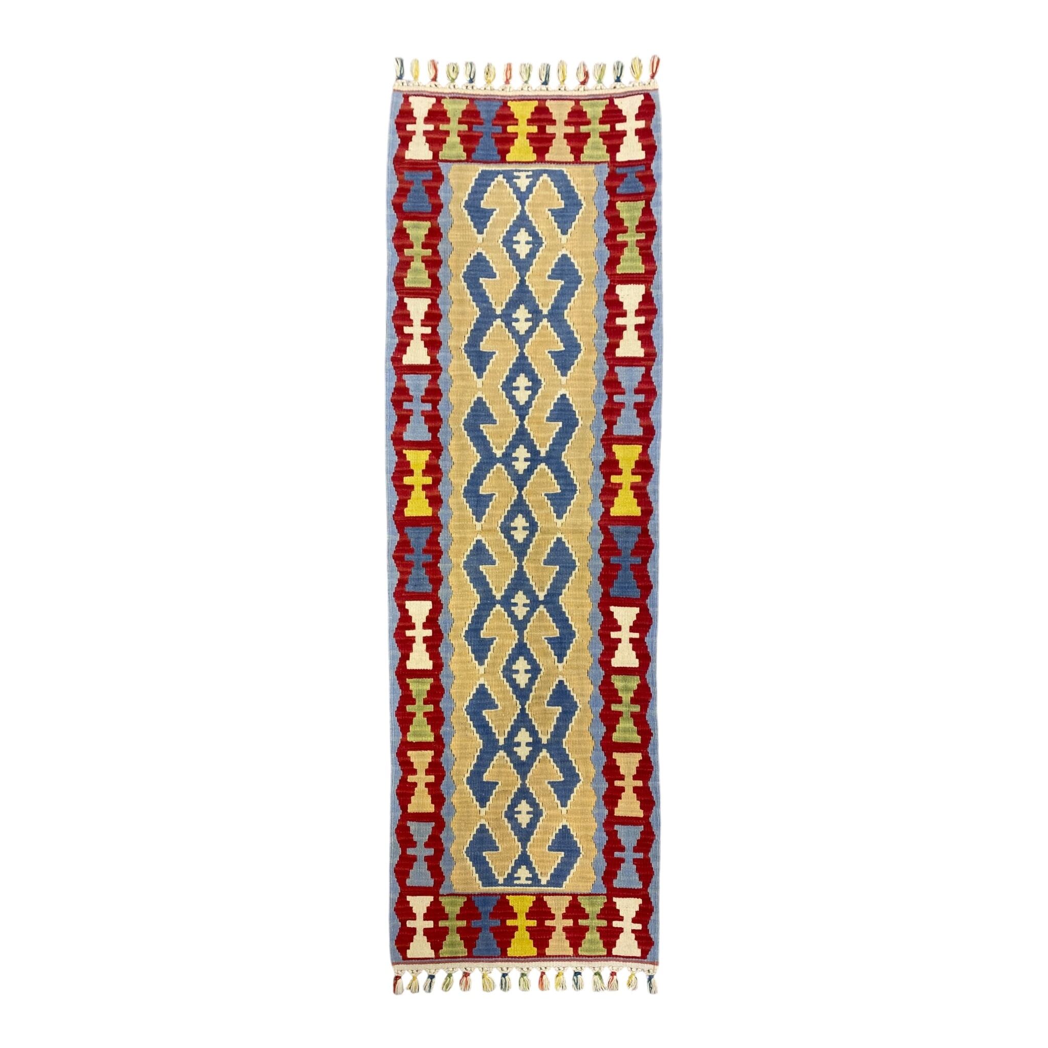 ストーリー…このキリムは、Kayseri(カイセリ)地域の村人もしくは遊牧民によって、カイセリのErciyes(エルジエス)山地域の村で花嫁道具として織られた特別な一枚です。特別でユニークなフリンジが付けられています。「織りの芸術」としてその魅力が際立つアイテムです。