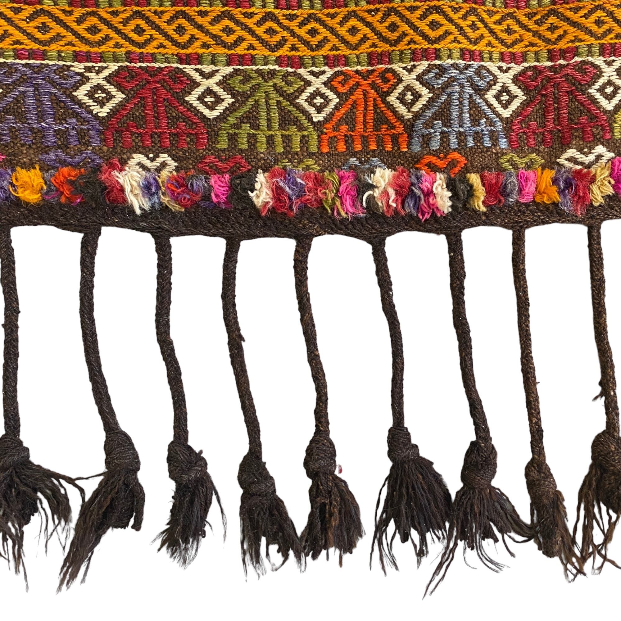 遊牧民のポンポン付きジジム キリムラグ(大型サイズ)